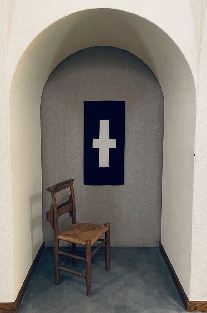 Exterior view of the curtained Anchorhold in Washington National Cathedral’s Center for Prayer and Pilgrimage, November 2023.
