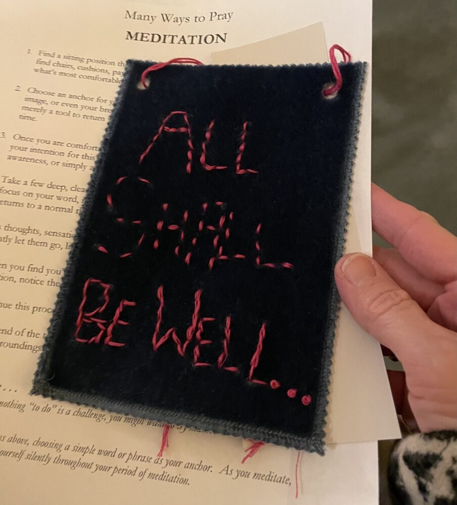 Sewing practice: All shall be well, by Terri Lynn Simpson and Carol Woodside. Textile and thread.